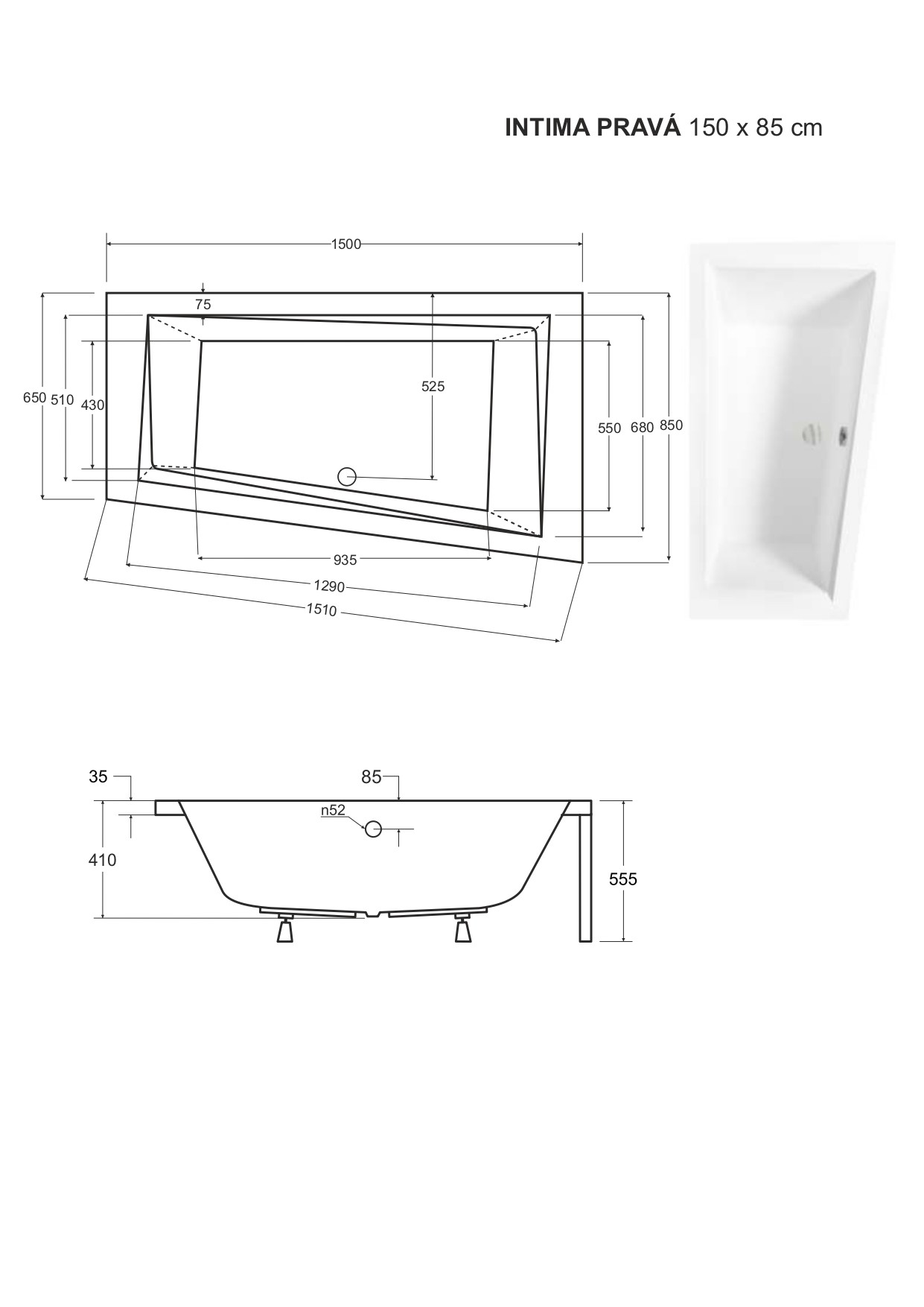 8 690,00 CZKvana INTIMA 150 (1500x850 mm), pravé provedení, bez nožiček