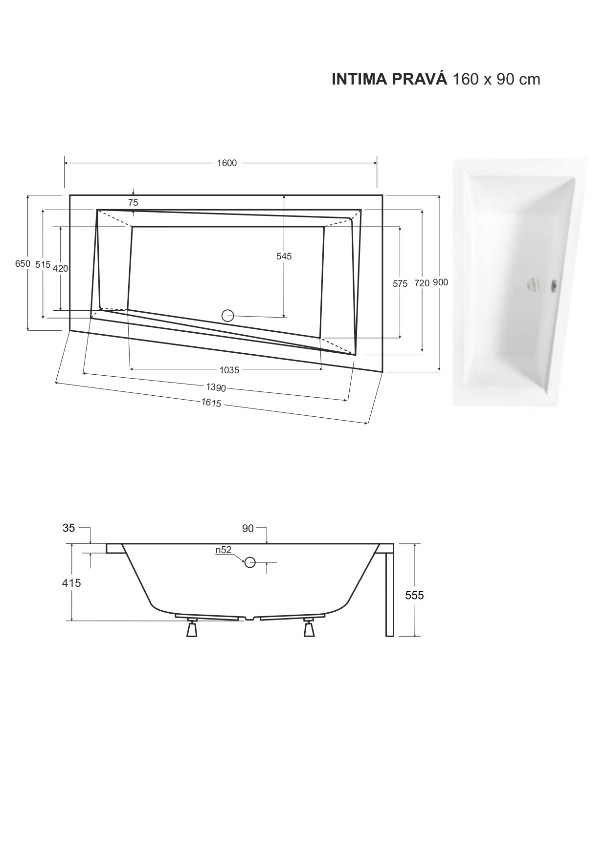 10 390,00 CZKvana INTIMA 160 (1600x900 mm), pravé provedení, bez nožiček