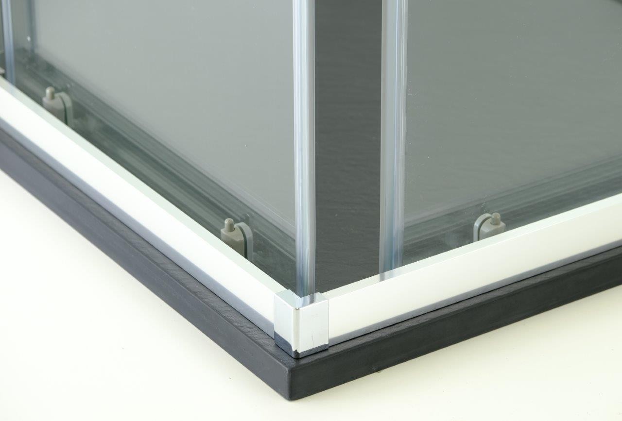 • Sklo: bezpečnostní 5/6 mm čiré nebo GRAPE (pevné sklo 5 mm, dveřní sklo 6 mm)