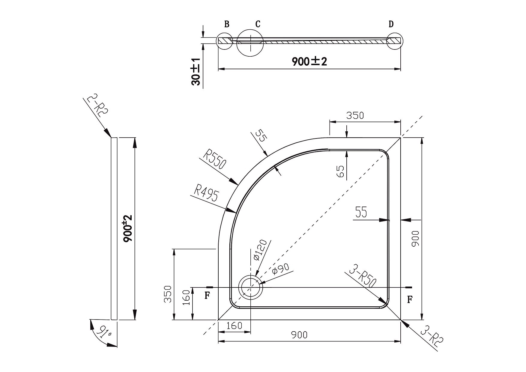 4 590,00 CZKVENETS - vanička z litého mramoru, čtvrtkruh 900x900x30 mm, R550 (bez nožiček)
