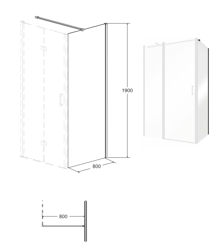Rozměr pevné stěny 80 x 190 cm (výška): montážní rozměr 78,5 - 80 × 190 cm
