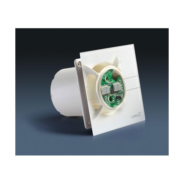 Axiální ventilátory na zeď či do stropu E100 GTH, HYGRO, s časovačem, sklo bílé