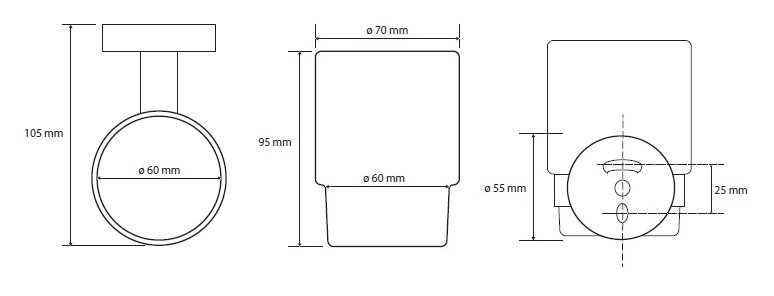 • rozměr: 70×95×105 mm (šířka x výška x hloubka)