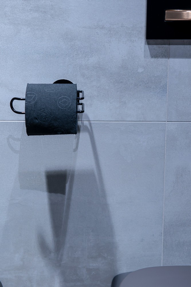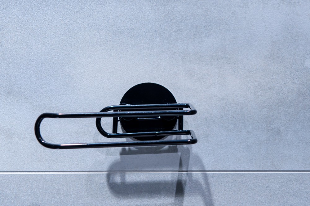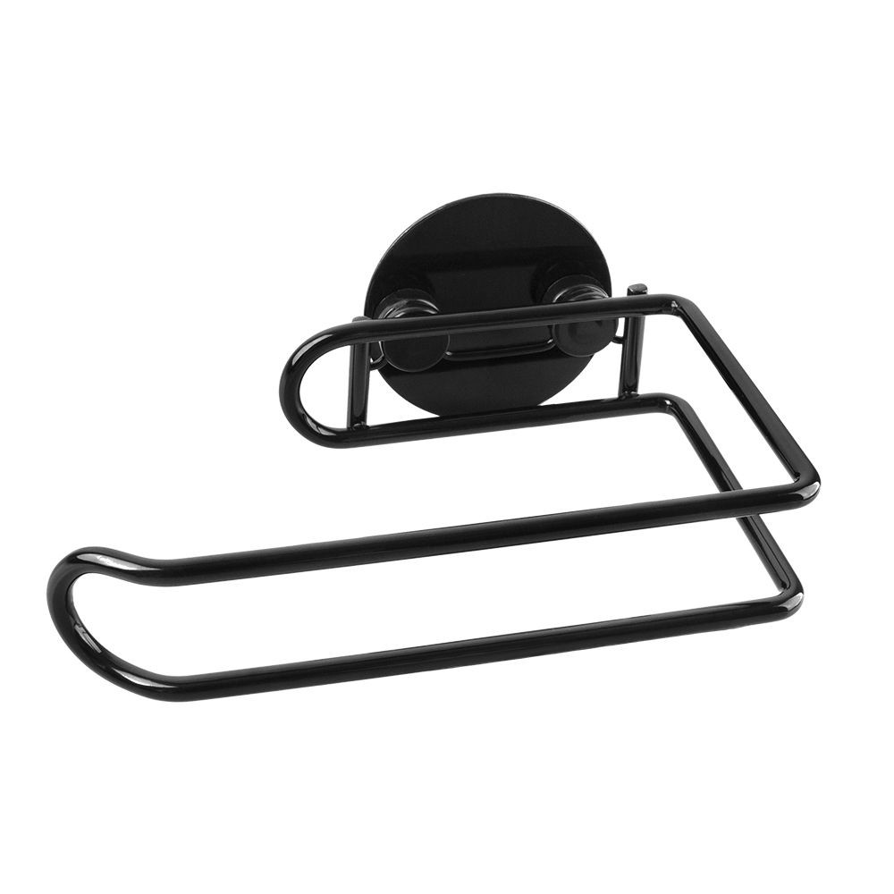 Praktická a elegantní držák toaletního papíru na nalepení. Držák z kvalitní, černě lakované oceli. Samolepící koupelnové doplňky jsou ideálním řešením, pokud nechcete vrtat do obkladů. Velmi kvalitní lepící páska 3M přilne k různým povrchům a umožňuje snadné odstranění doplňků bez zanechání stop či poškození. Jeho maximální nosnost je 4 kg.