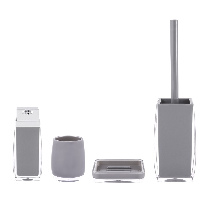 Sérii BEHE je tvořena dávkovačem tekutého mýdla (250 ml), kelímkem na zubní kartáčky, mýdelníkme a WC štětkou.