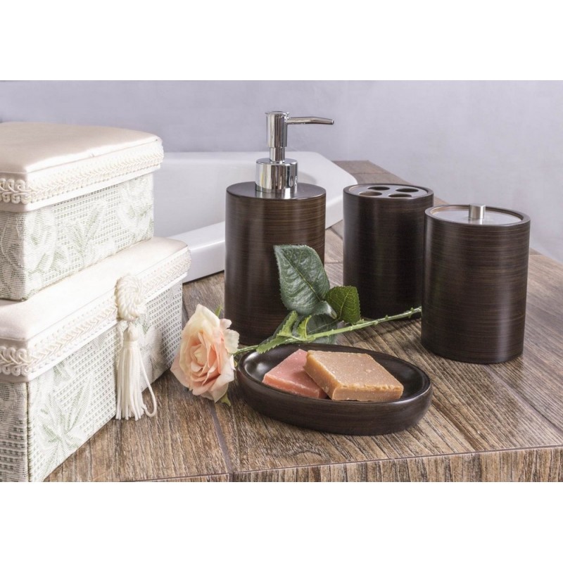 Série ETNIC je tvořena kelímkem na zubní kartáčky, mýdelníkem, WC štětkou