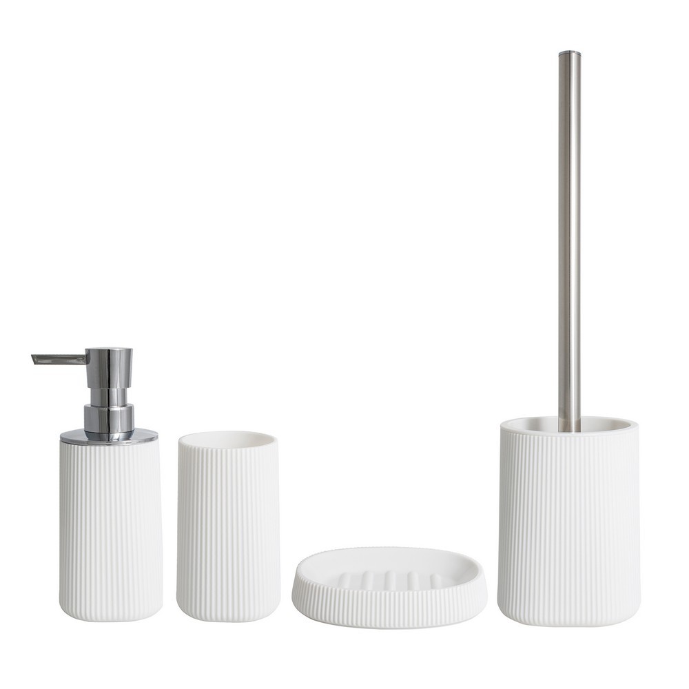 Sérii ZEN je tvořena kelímkem, mýdelníkem, WC štětkou a dávkovačem mýdla.