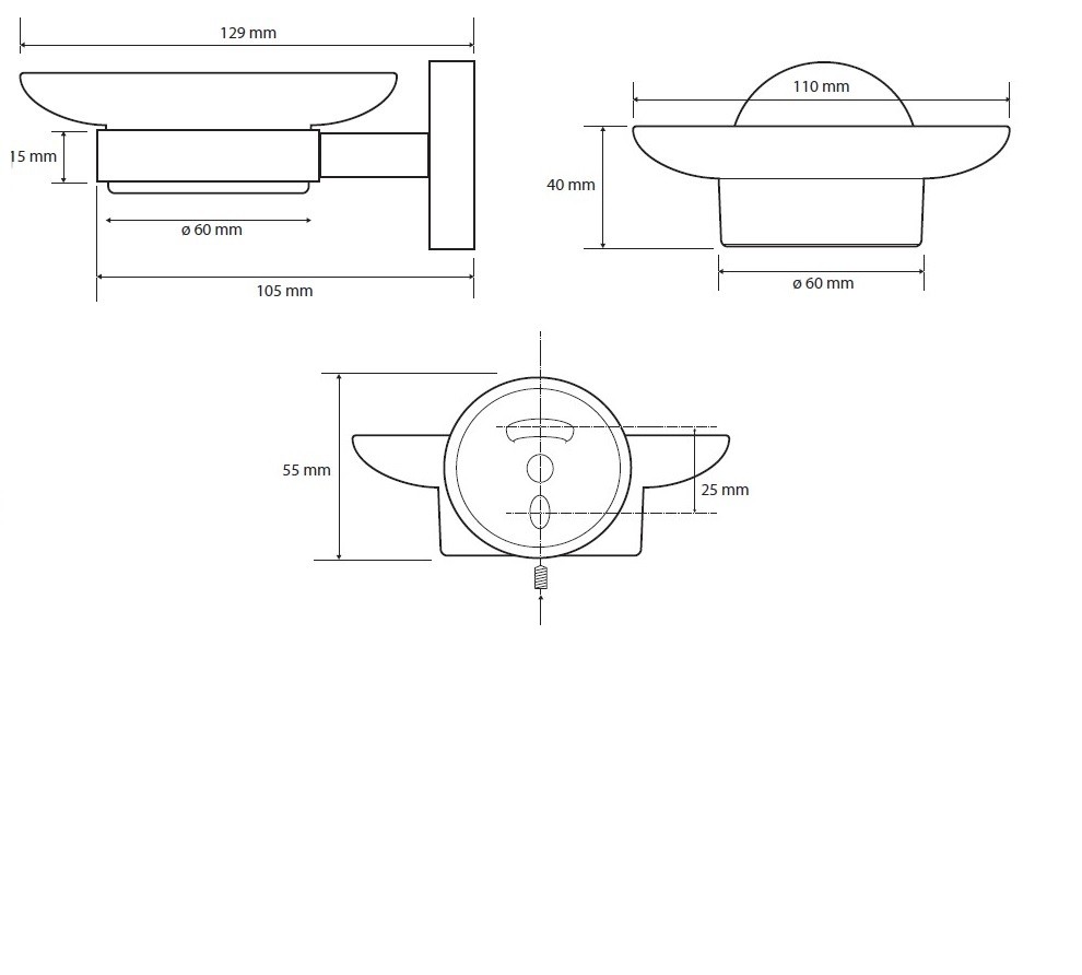 Mýdlenka skleněná, 110×55×129 mm, barva chrom