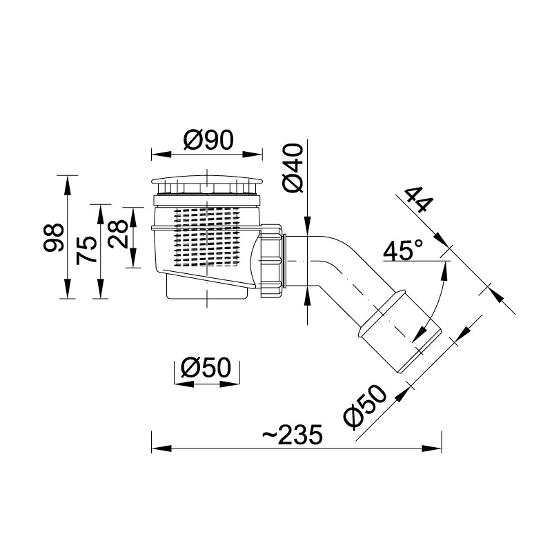 310,00 CZKSTY-402-K sifon vaničkový 50mm, odtok 50mm - chrom