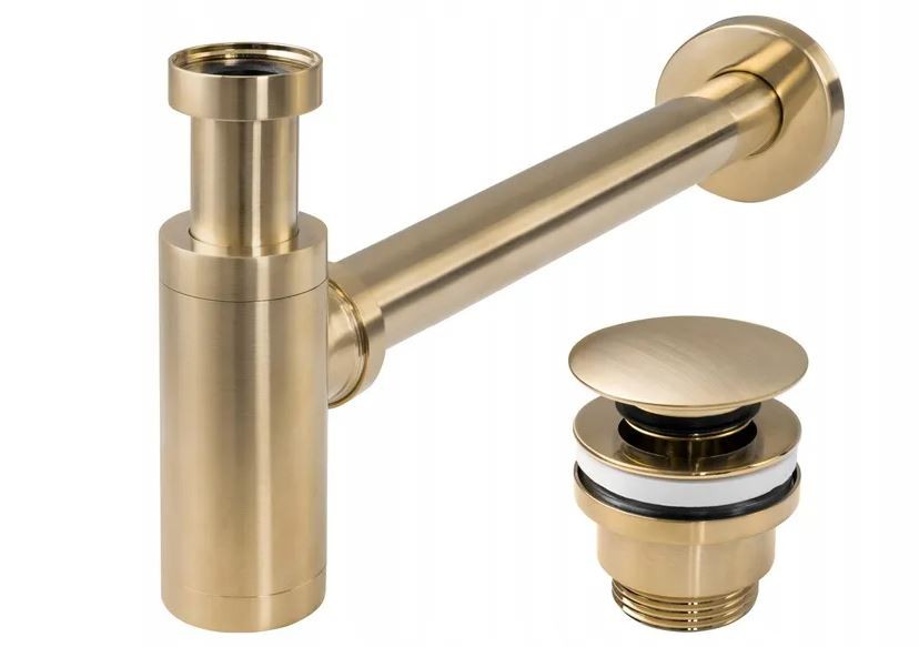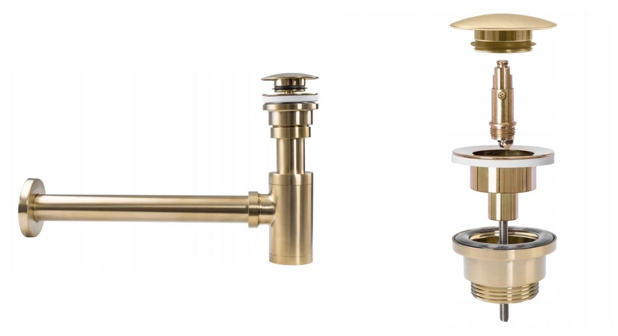 2 290,00 CZKUmyvadlový kovový sifon s click/clack zátkou, univerzální, zlatá matná-broušená