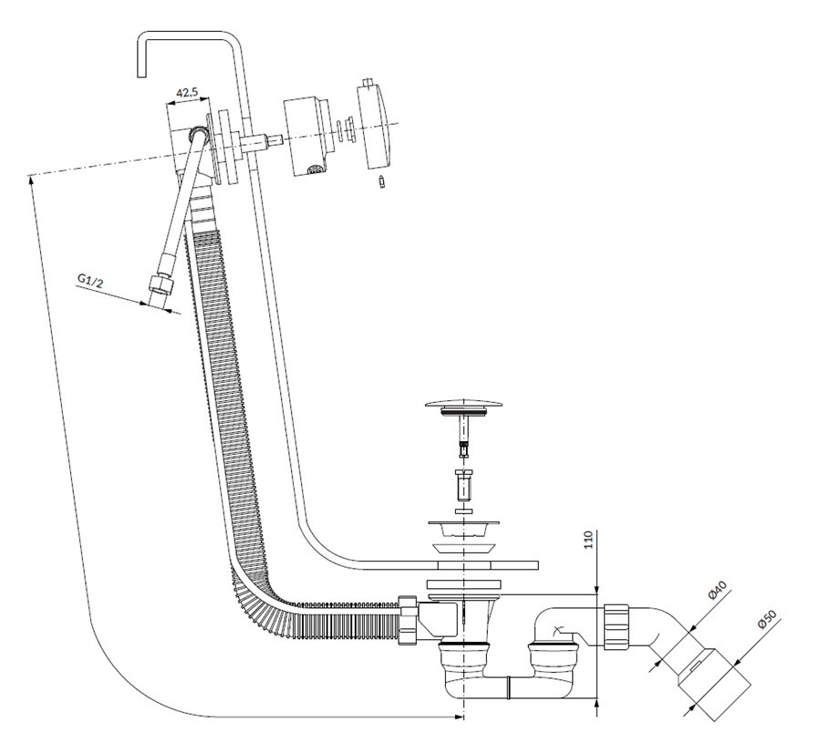 - určeno pro vany s průměrem odtoku ø5,2 cm