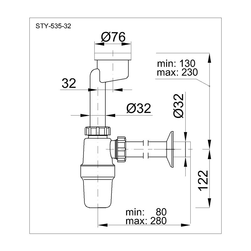 STY-535-32 sifon pisoárový excentrický, odtok 32mm
