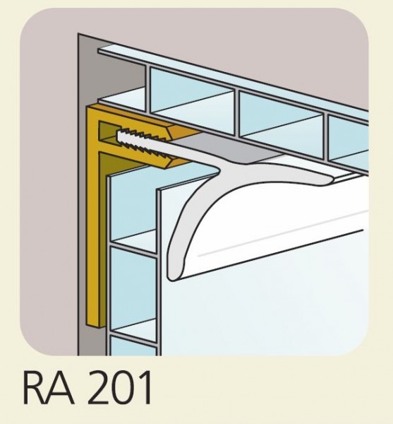 Vnitřní kulatý dokončovací profil A201 slouží k překrytí spojů ve vnitřních rozích místnosti, zabraňuje usazování nečistot a průnikům vlhkosti do profilů.