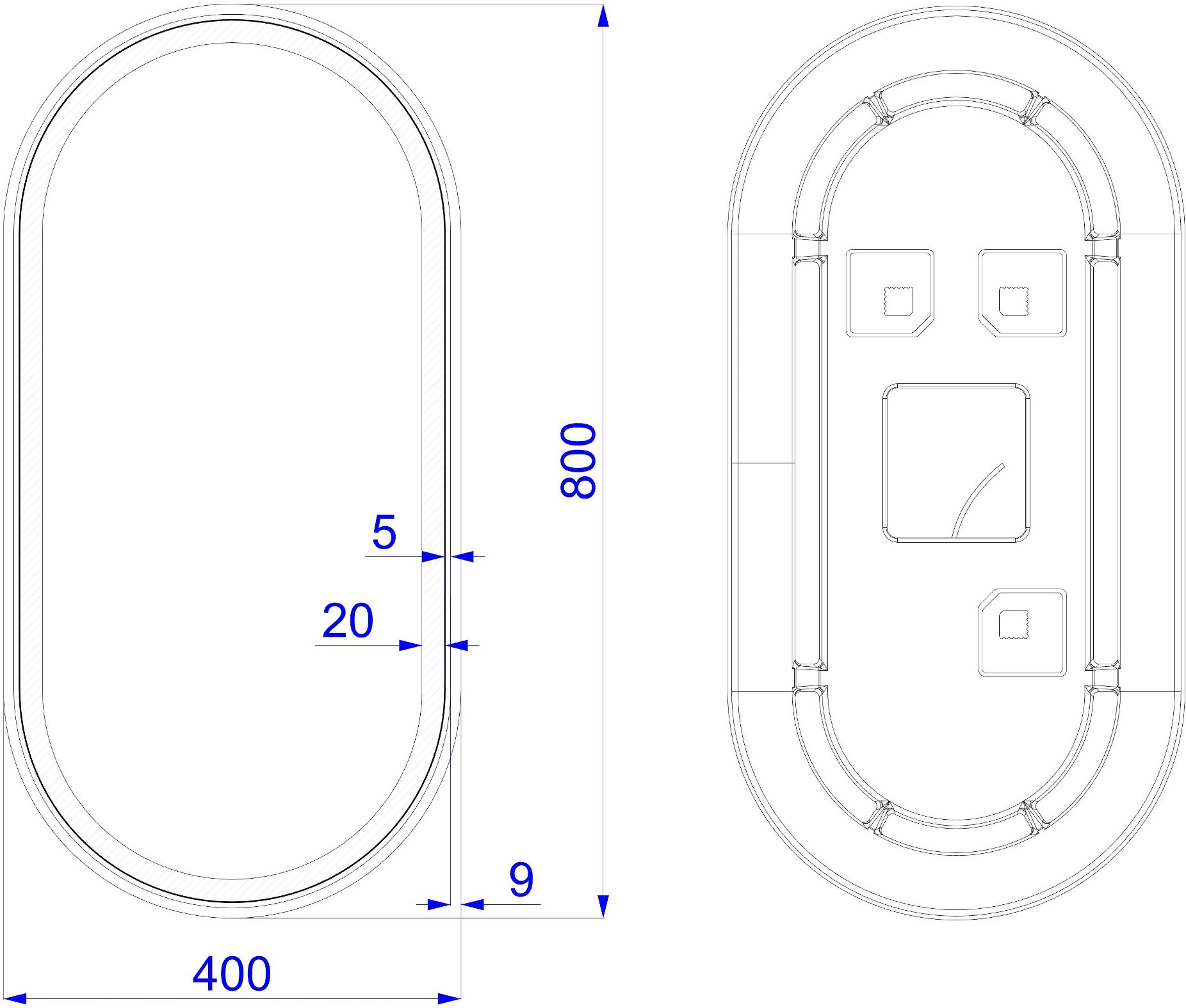 ERFURT BLACK - zrcadlo s LED osvětlením 400 x 800 mm, rám - hliník (černá barva)
