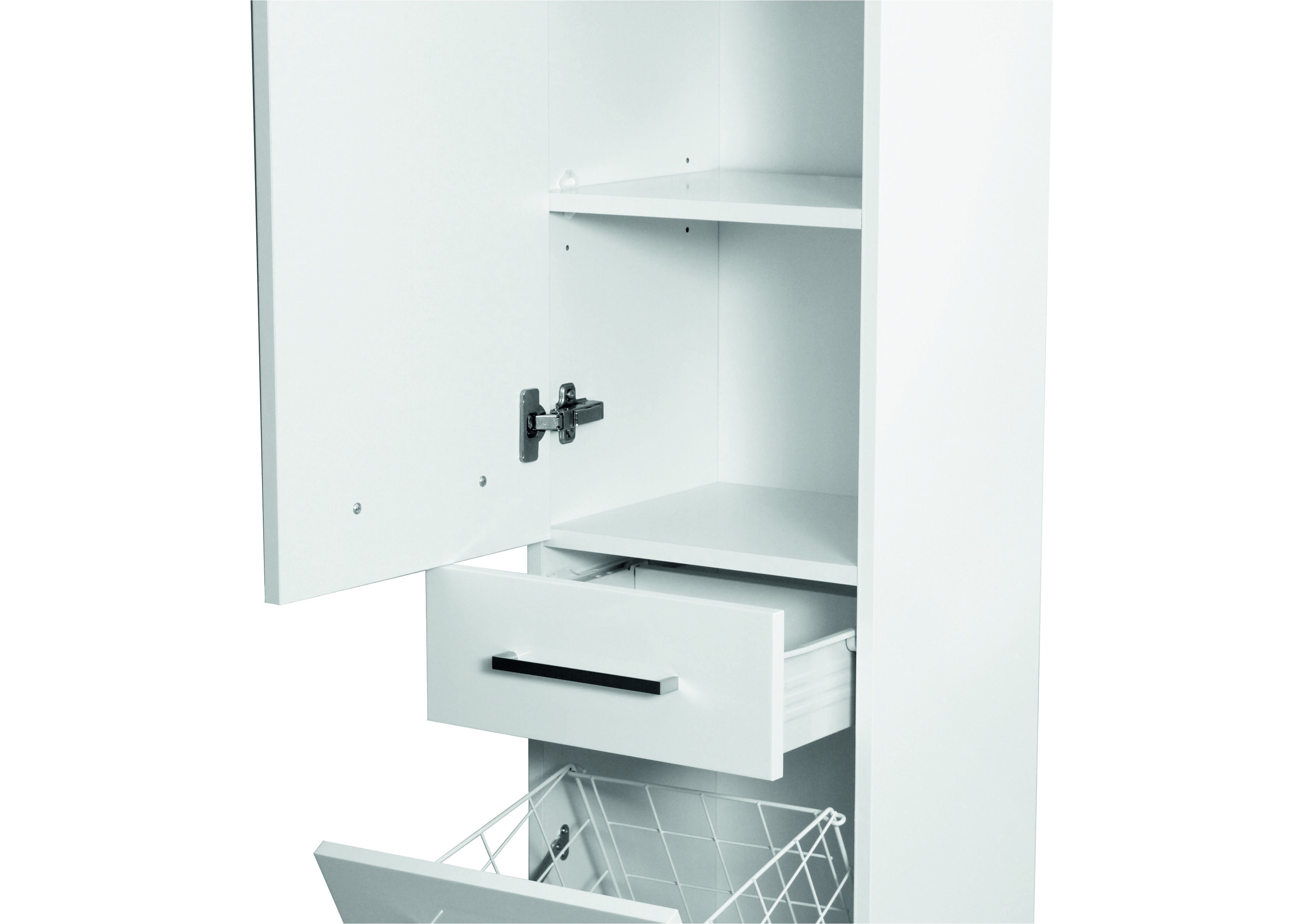 - 1x dvířka, 1x šuplík, 1x prádelní koš