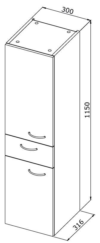 • Vysoká boční skříňka D (30 × 31,6 × 115 cm), 2 dvířka, 1 šuplík, levé provedení