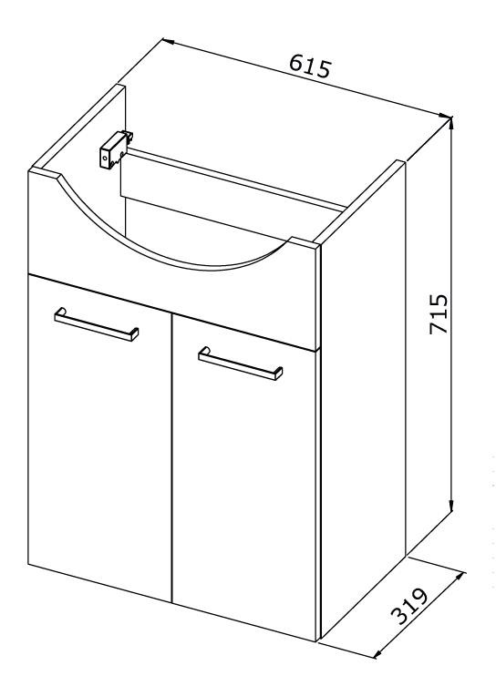 - spodní skříňka: 61,5 × 31,9 × 71,5 cm