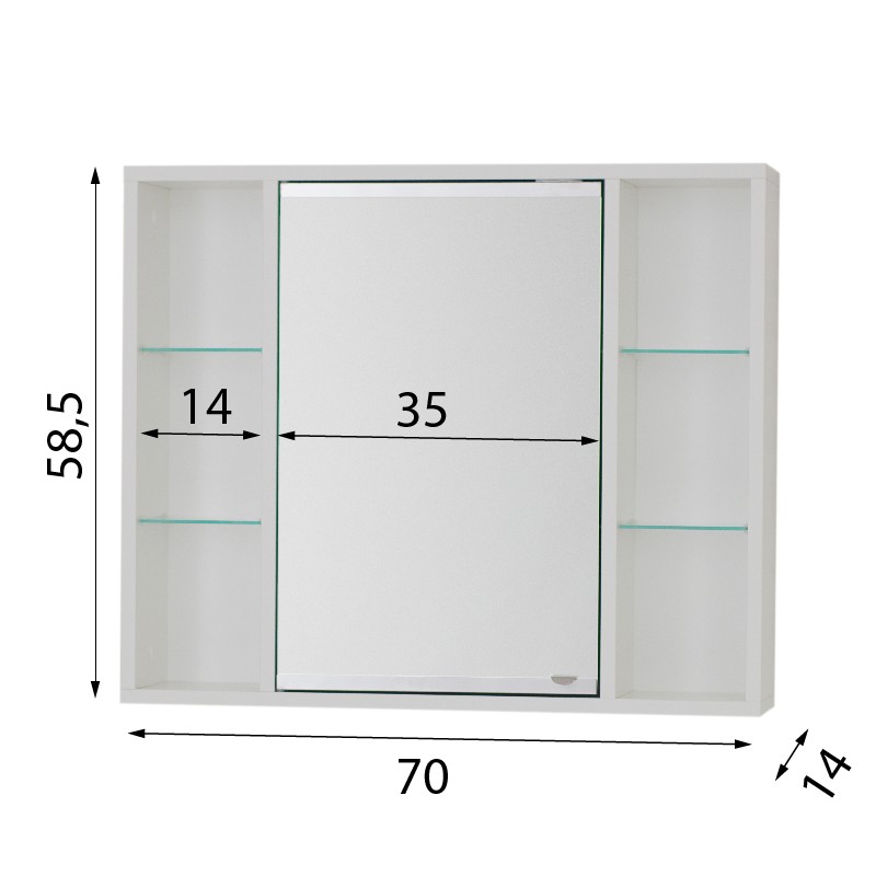 2 190,00 CZKSÉVIS 70 - horní zrcadlová skříňka bez osvětlení, 70 x 58,5 x 14 cm
