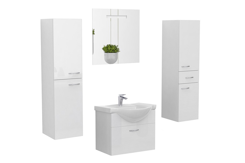 VIKY je naší základní řadou nábytku, která přes svojí úžasnou cenu nabízí i elegantní design a praktický úložný prostor v objemné zásuvce. Nábytek je dodáván v demontu, což usnadňuje jeho přepravu z prodejny domů. Výhodou je v této cenové kategorii nadstandardní výběr doplňkových skříněk. Tiché dovírání je pak už jen takovou pomyslnou třešničkou na dortu. Krásně bílé a prostorné umyvadlo u nabízených umyvadlových skříněk zvyšuje komfort při užívání a zároveň přináší pocit nadstandardu. Je možné tento nábytek osadit i na nožičky. Uvedené rozměry jsou ve formátu: šířka × hloubka × výška. Skříňka je celolakovaná.