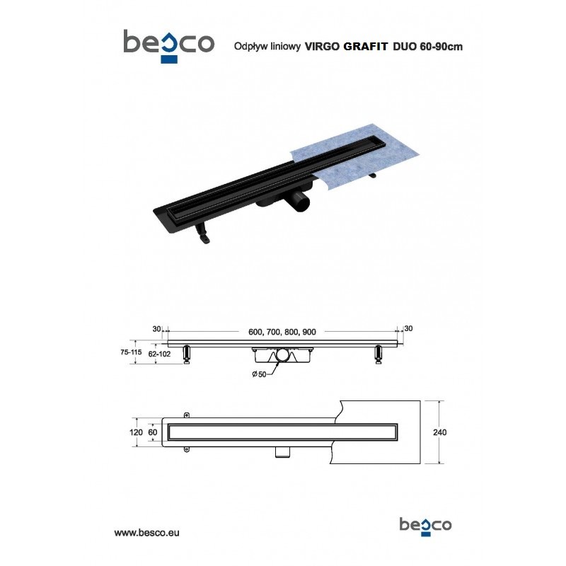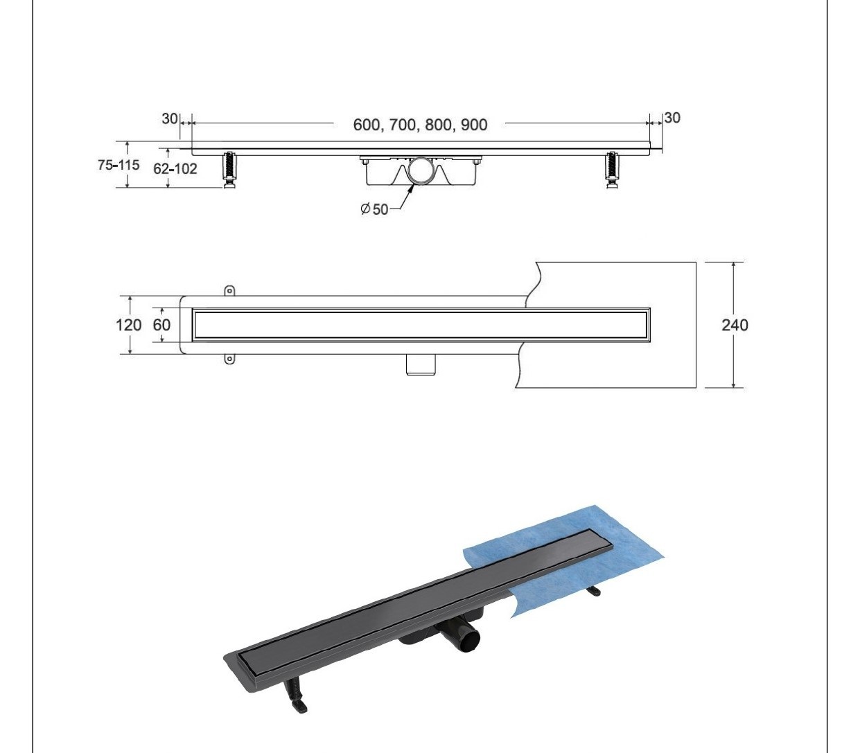 Kvalitně a moderně zpracovaný odtokový žlab. Tělo žlabu i vlastní rošt je vyroben z velice kvalitní nerezi a jsou oba s povrchovou úpravou v grafitové barvě. Rošt lze použít buď pro vložení dlažby, nebo jako pohledový (grafitová barva). Tento žlab obohatí každou koupelnu o nádech luxusu. Sada obsahuje: žlab se sifonem a nožičkami, rošt a hydroizolační pásku.
