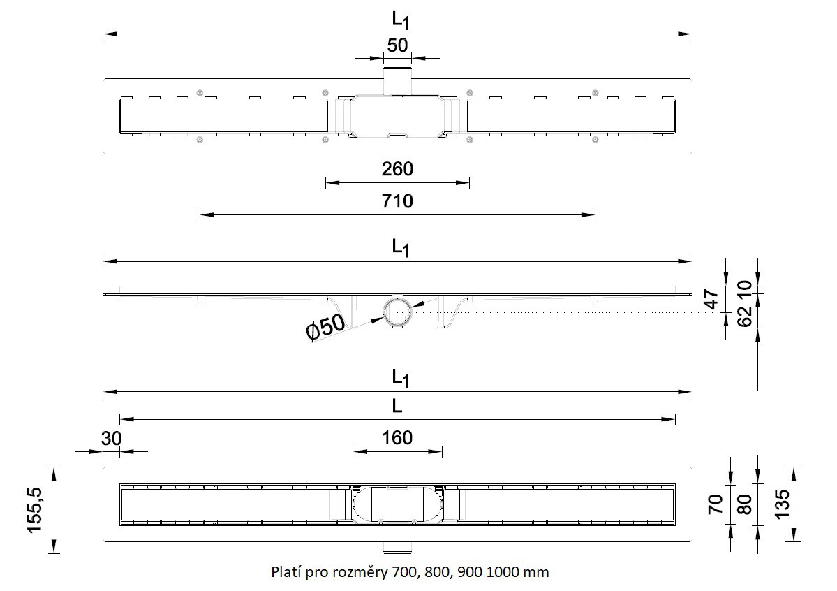 Odtokový žlab M - 700: délka roštu 70 cm, délka žlabu 76 cm