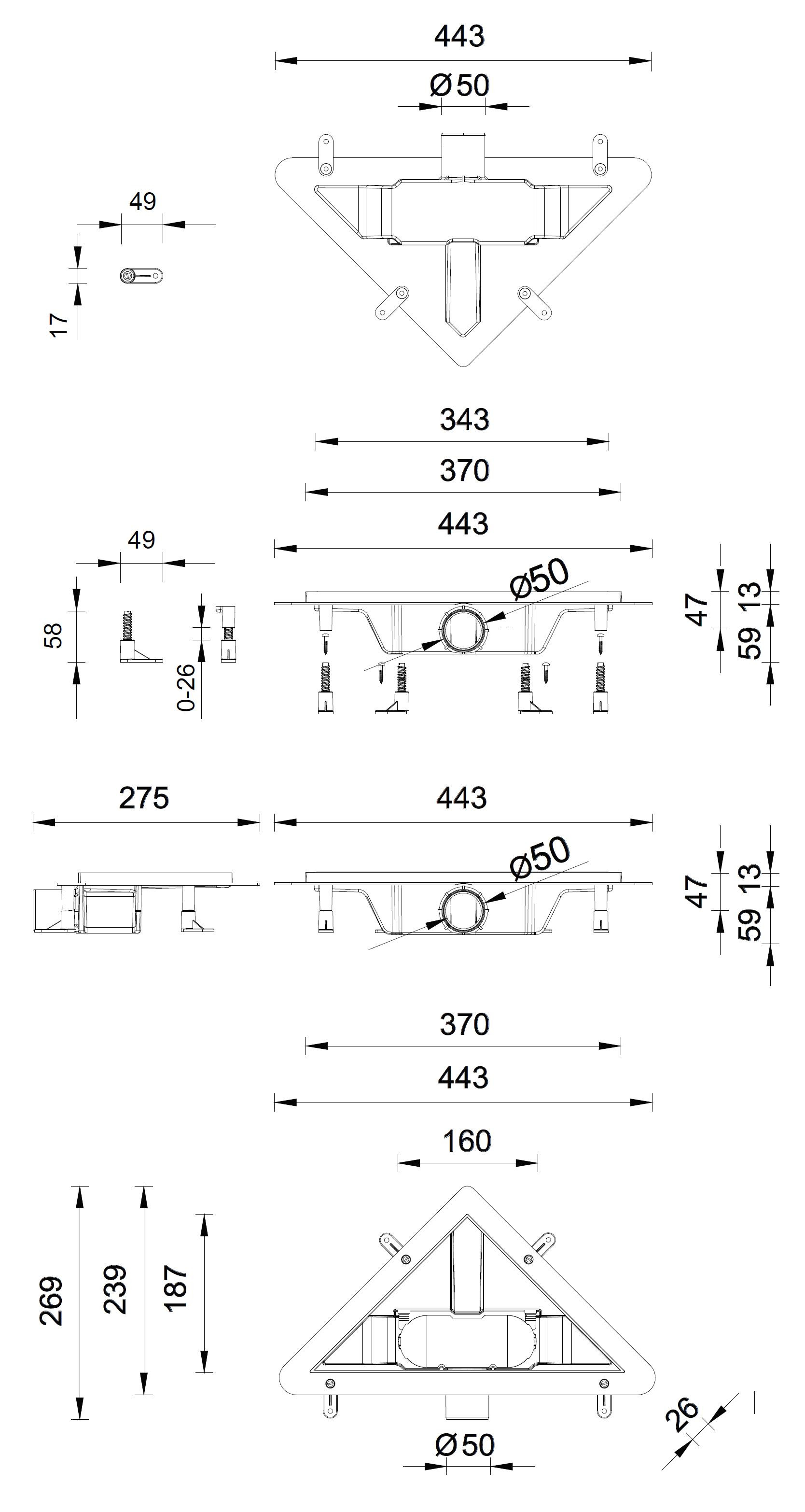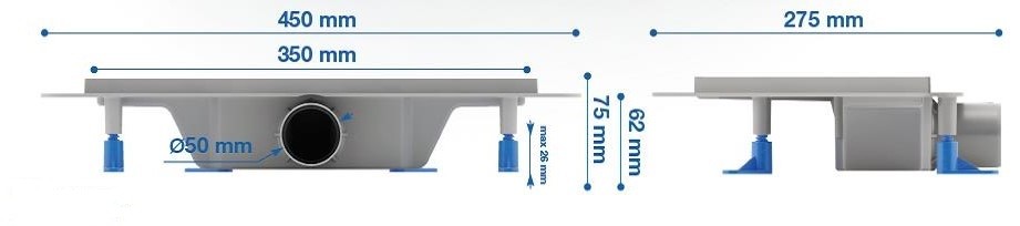 - dvojitá zápachová uzávěra, vodní sloupec a kulička. Tzn. v případě odpaření vody (podlahové topení,  nepoužívané byty, chalupy, chaty atd.) kulička zaklapne otvor a zabraňuje vzlínání zápachu