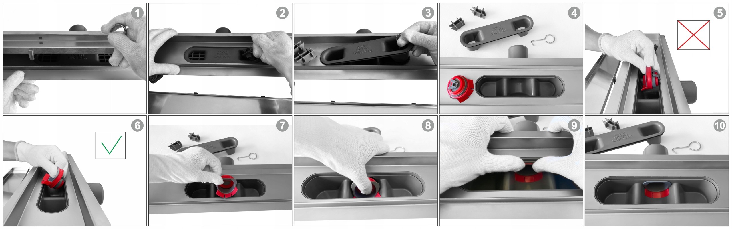 Suchá klapka je určena pro podlahové žlaby VIRGO (vyjma VIRGO SLIM a VIRGO 360 DUO, do kterých se nedá osadit).