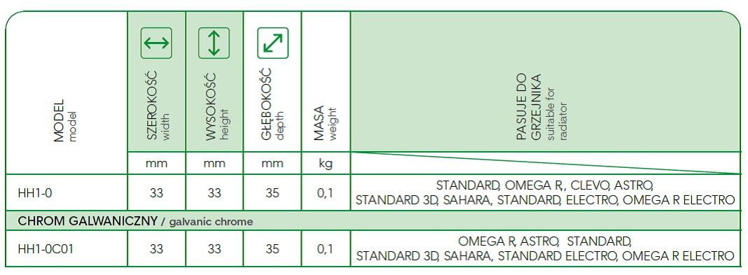 doplněk HH1 k radiátorům OMEGA R, ASTRO 35 mm, C35 white silk