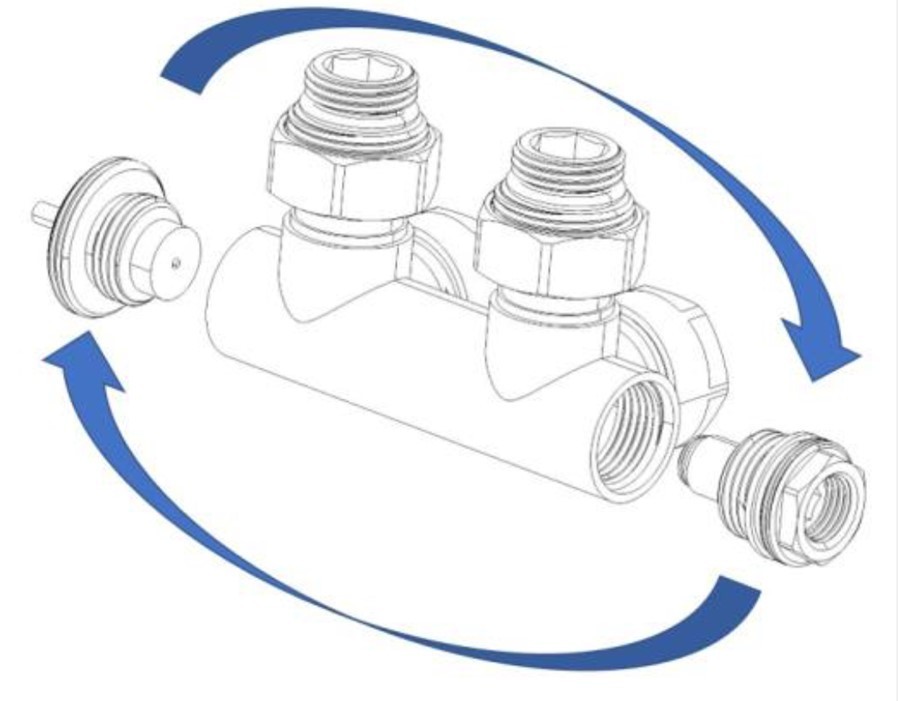 Ventil je oboustranný. Přívod je u termostatické hlavice.