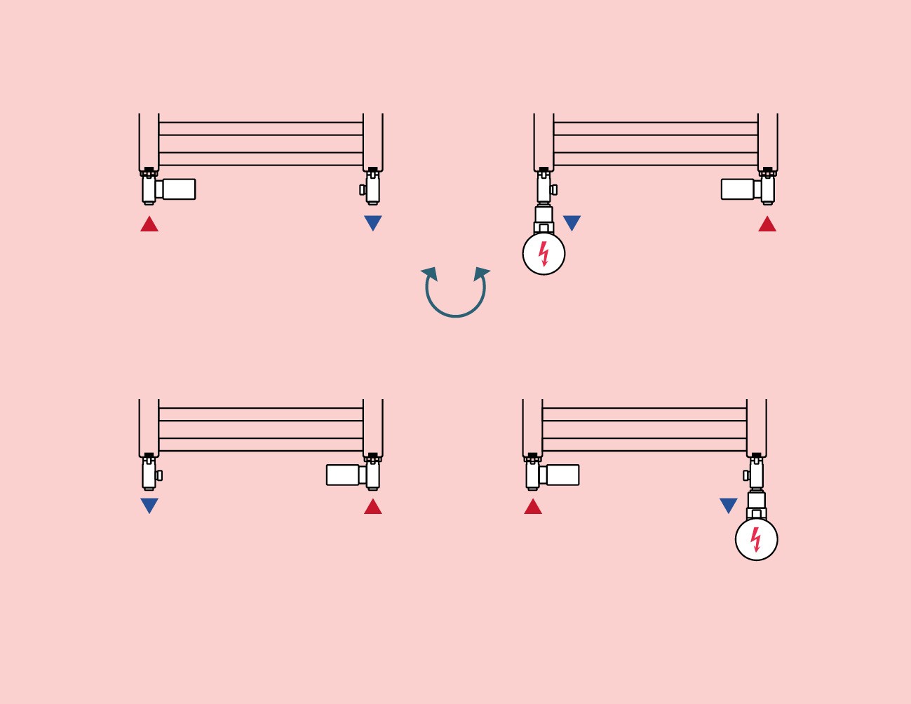 Pro kombinované topení musíte objednat RDINTEGSADA. + EL. TYČ v doporučeném výkonu, kterou můžete instalovat vlevo nebo vpravo skrz ventil do radiátoru (např. tyč RADPST...).