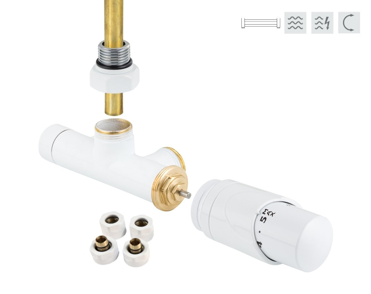 2 275,01 CZKONE-SADA, 1-bodový ventil s hlavicí, bílá barva, včetně svěrného šroubení Cu + Al-Pex