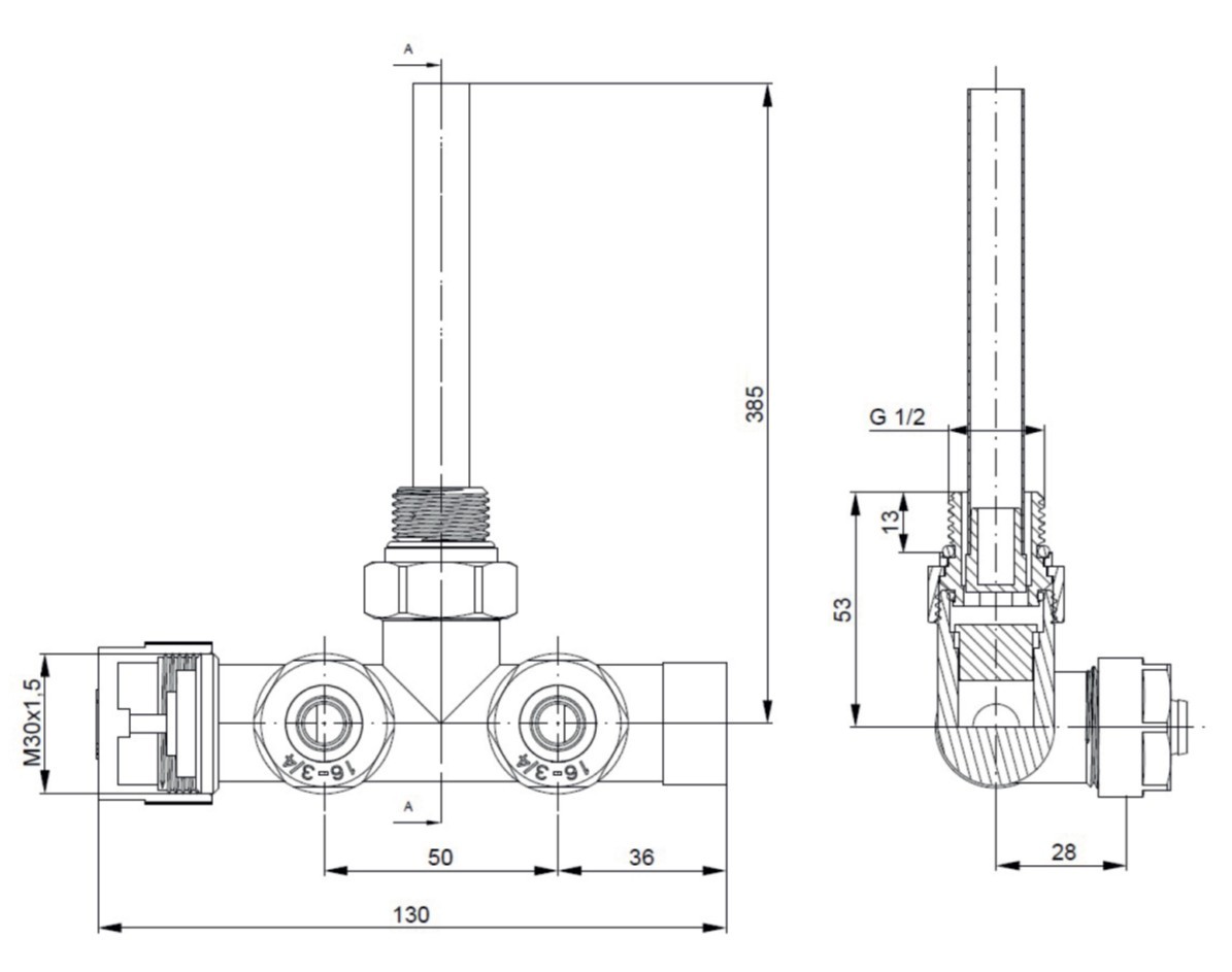 Pro kombinované topení musíte objednat RDONESADA. + EL. TYČ v doporučeném výkonu, kterou můžete instalovat vlevo nebo vpravo vedle ventilu do radiátoru (např. tyč RADPST...).