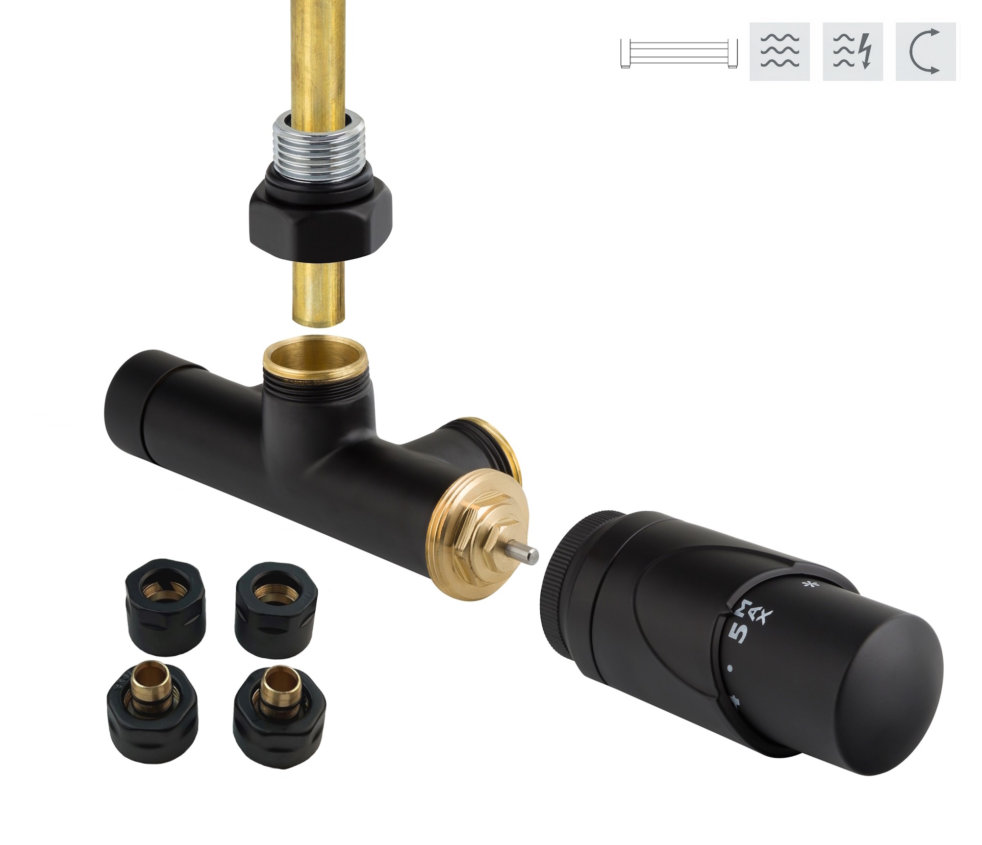 2 275,01 CZKONE-SADA, 1-bodový ventil s hlavicí, černá barva, včetně svěrného šroubení Cu + Al-Pex