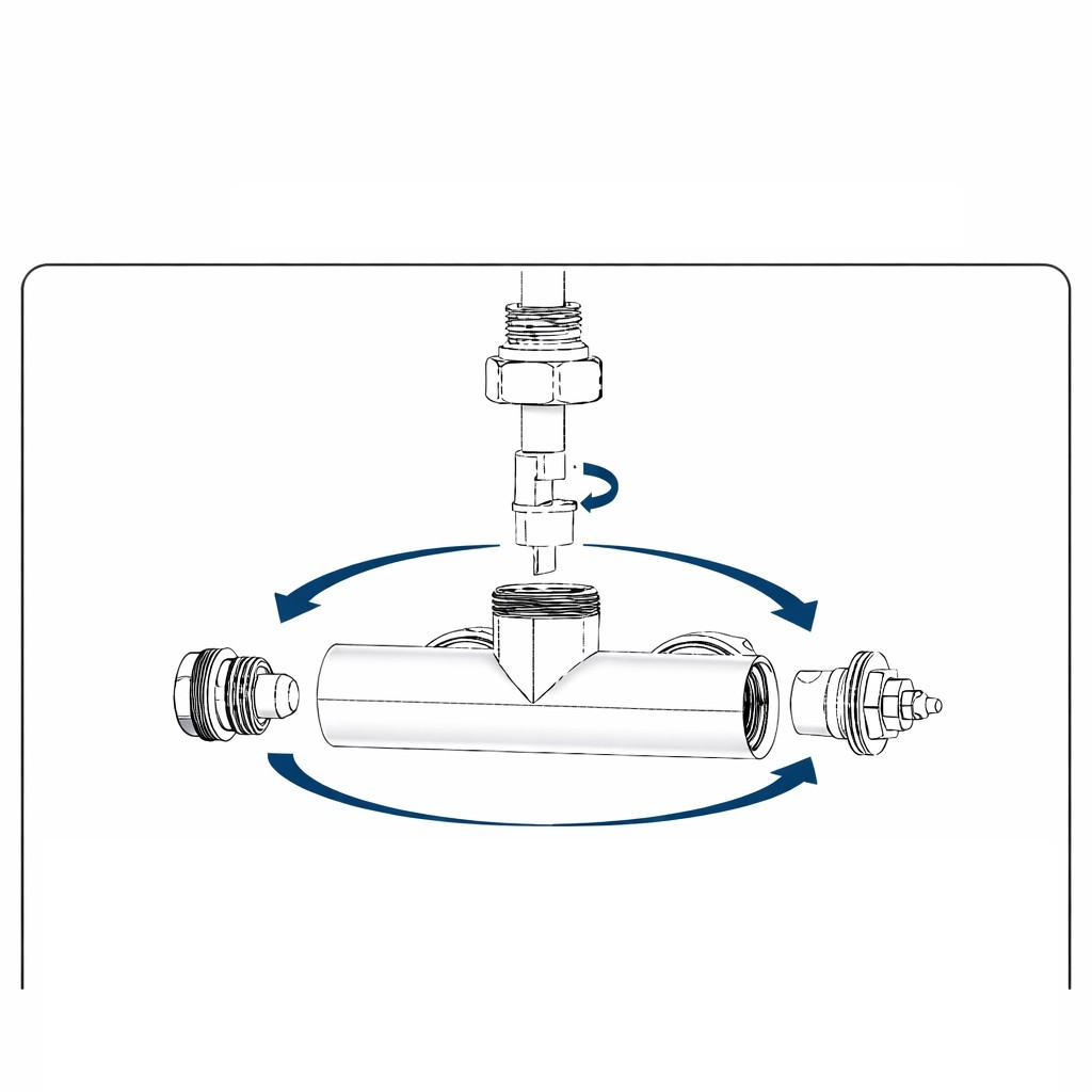 Ventil je oboustranný, lze ho instalovat VLEVO nebo VPRAVO do radiátoru. Zpátečka u termostatické hlavice.
