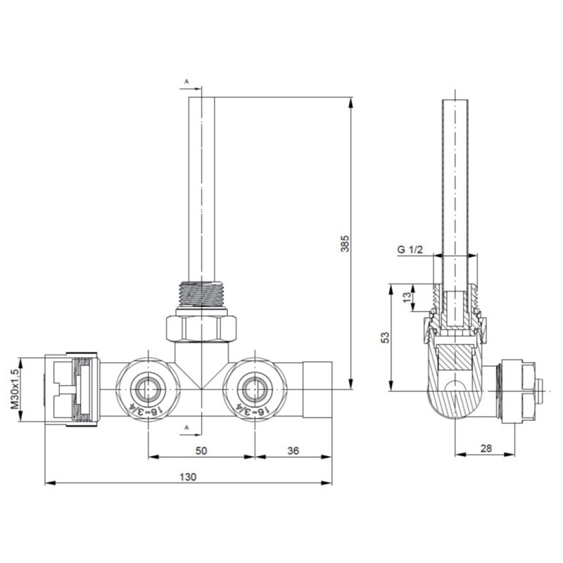 Pro kombinované topení musíte objednat RDONESADAMR. + EL. TYČ v doporučeném výkonu, kterou můžete instalovat vlevo nebo vpravo vedle ventilu do radiátoru (například RADPST...).