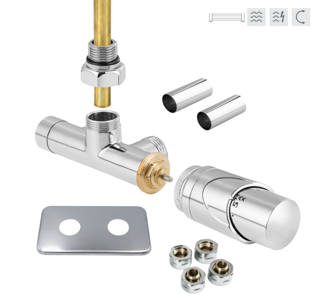 Kompletní nabídka Vám usnadní výběr ventilu, neboť nemusíte řešit typ přívodního potrubí ani krycí rozety. Sada obsahuje: