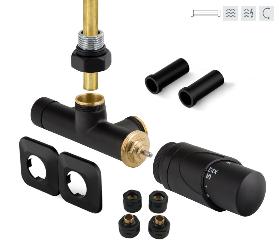 2 491,00 CZKONE-SADA, 1-bodový ventil s hlavicí+svěrné šroub.Cu+Al-Pex, plast.rozeta+krycí trubičky,černá barva