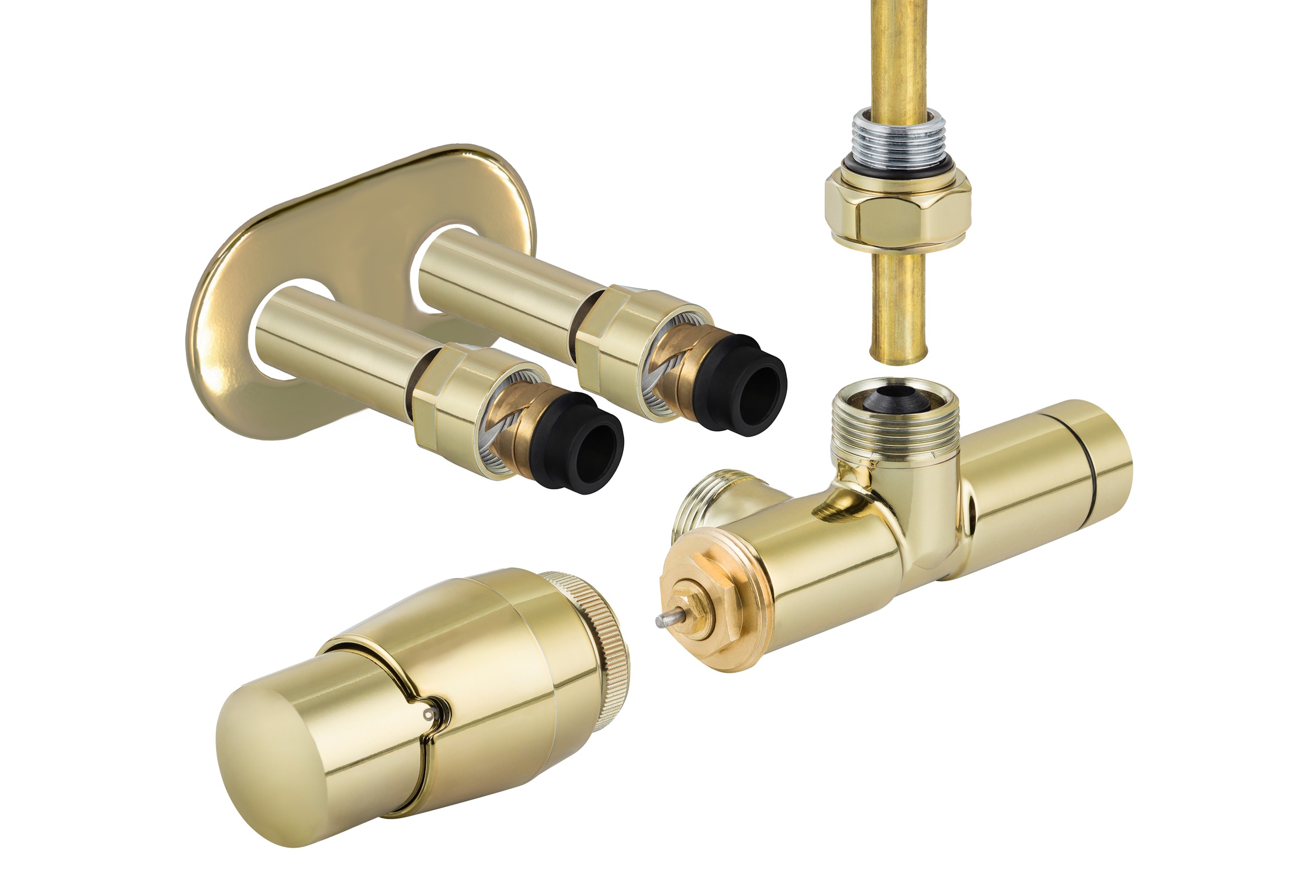 SINGLE-SET-RZG, jednobodový ventil Z7, barva lesklé zlato, pravé provedení, komplet set