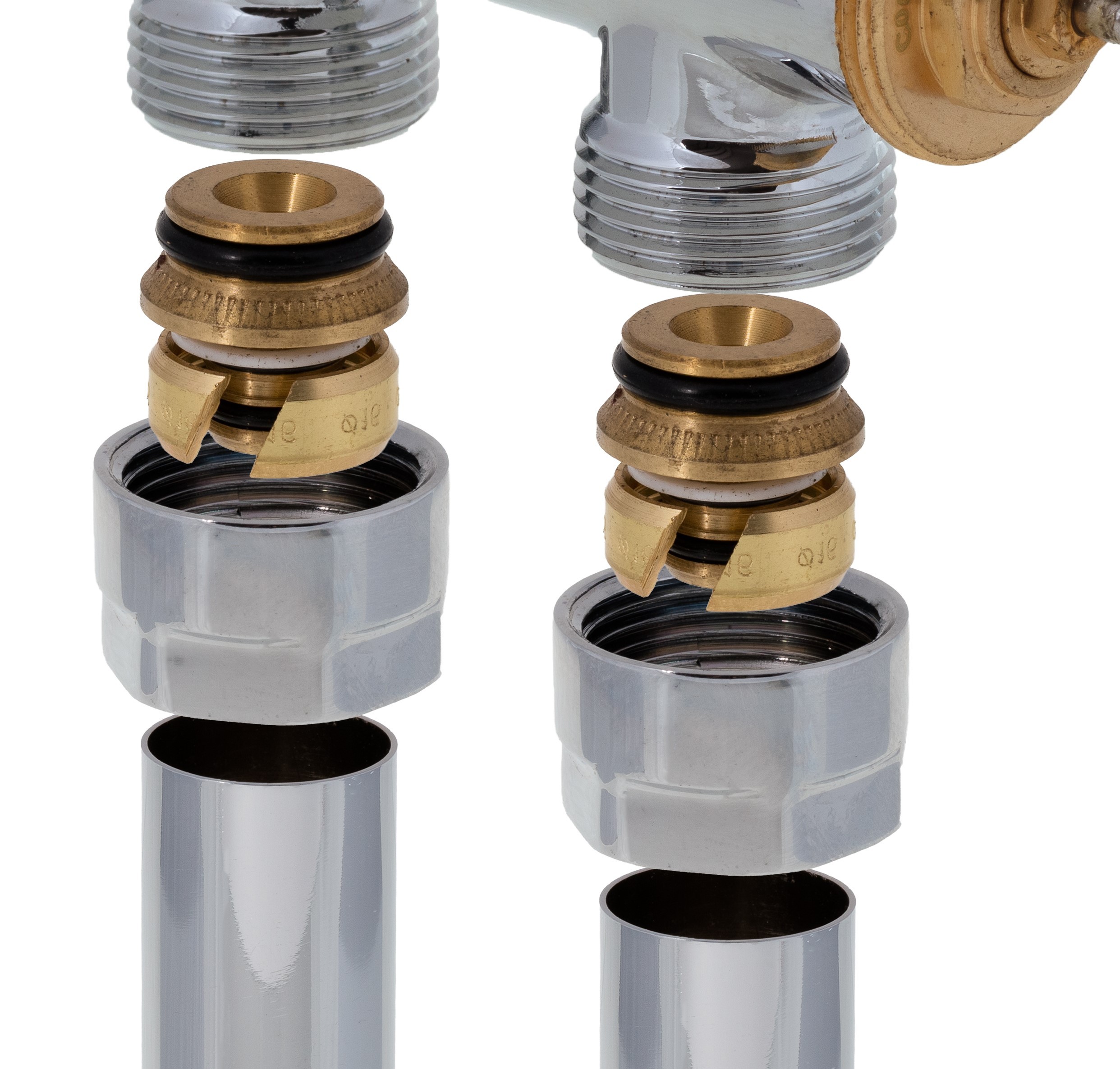 200,00 CZKSvěrné spojky pro Pex-Al-Pex potrubí 16×2 mm, lesklý chrom, TERM-SET, SINGLE-SET