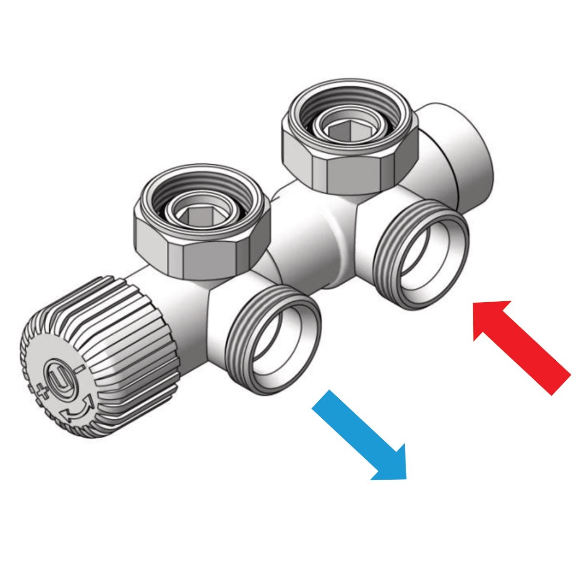 Ventil je určen pro připojení radiátorů na rozvody TUV s vývodem ze zdi. Nelze kombinovat s elektrickou topnou tyčí.