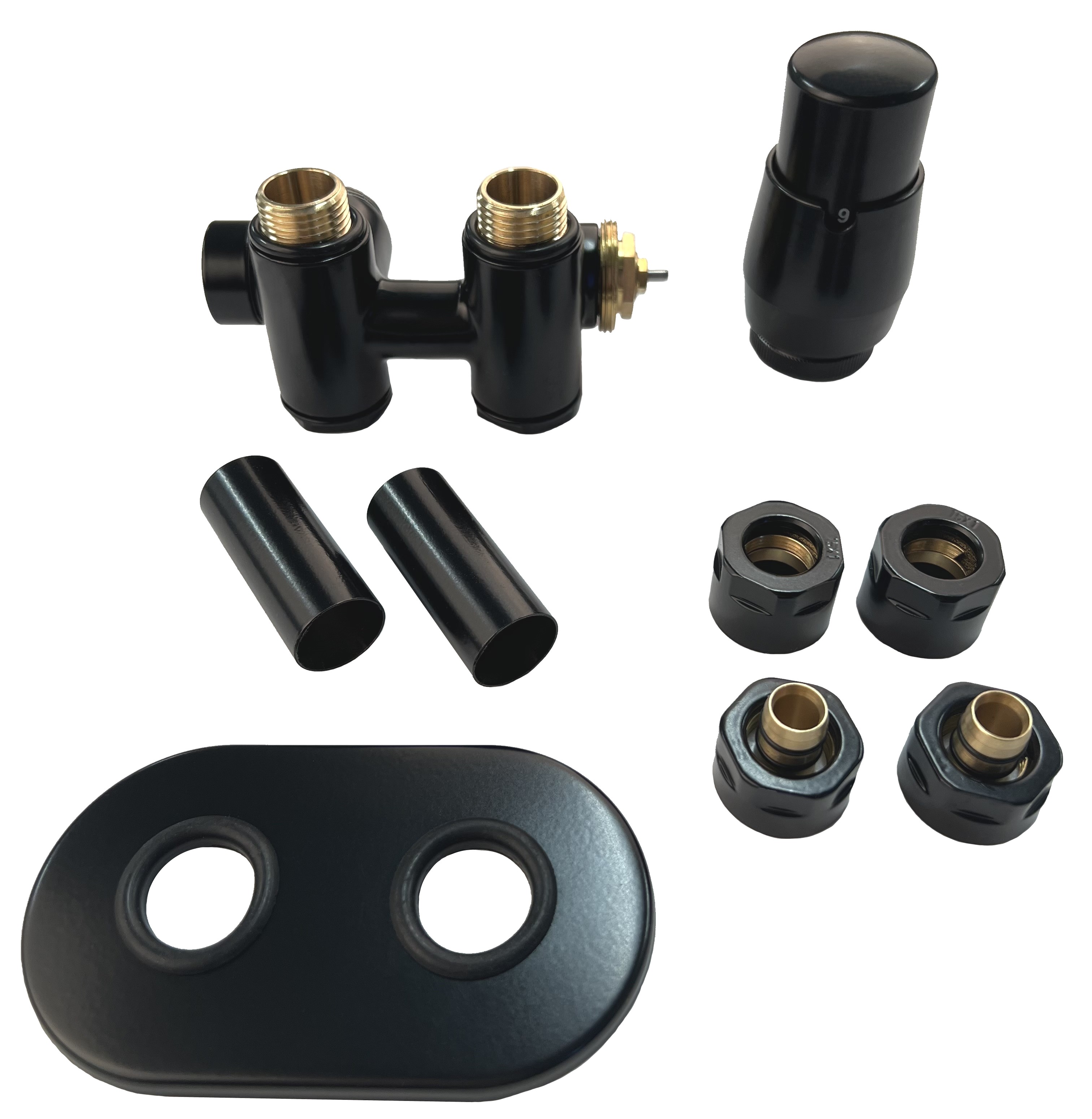 THERMCOMB-SET-RB, středový ventil s připojením pro el. tyč, barva černá, komplet set, prav.varianta