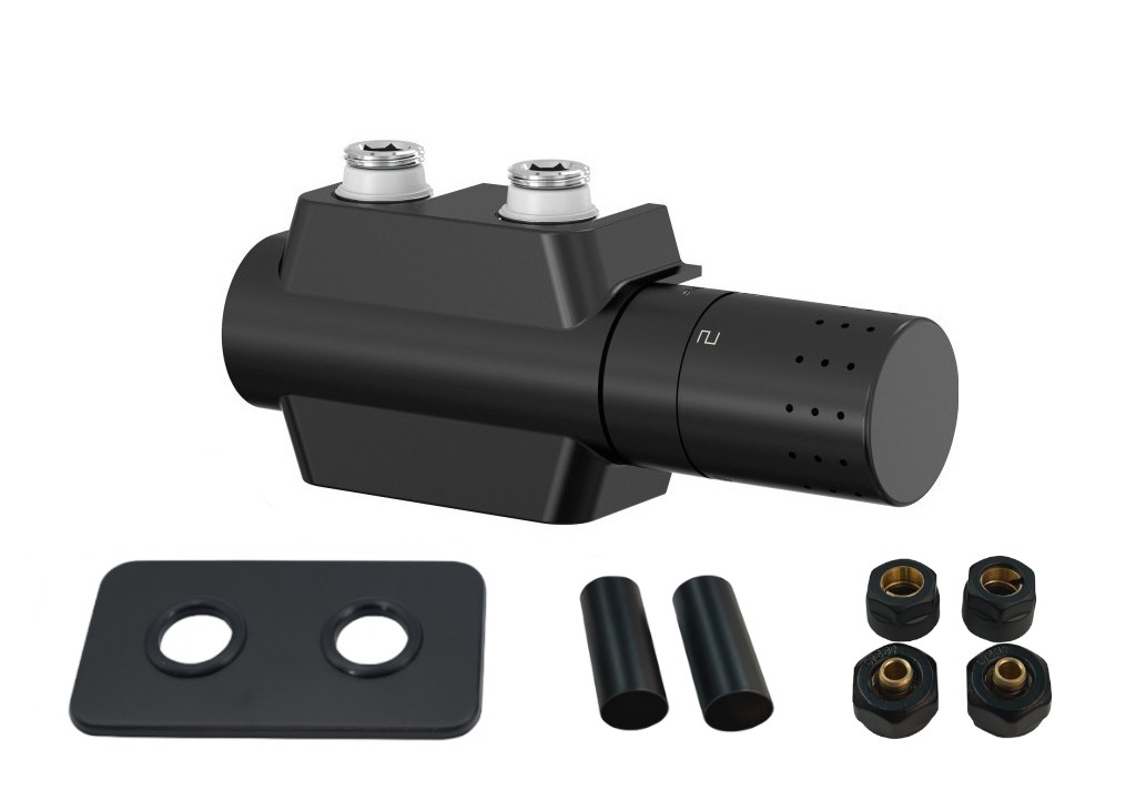 4 575,01 CZKUNI-SADA, střed.ventil s hlavicí+svěrné šroub.Cu+Al-Pex, mosaz.rozeta+krycí trubičky,černá barva