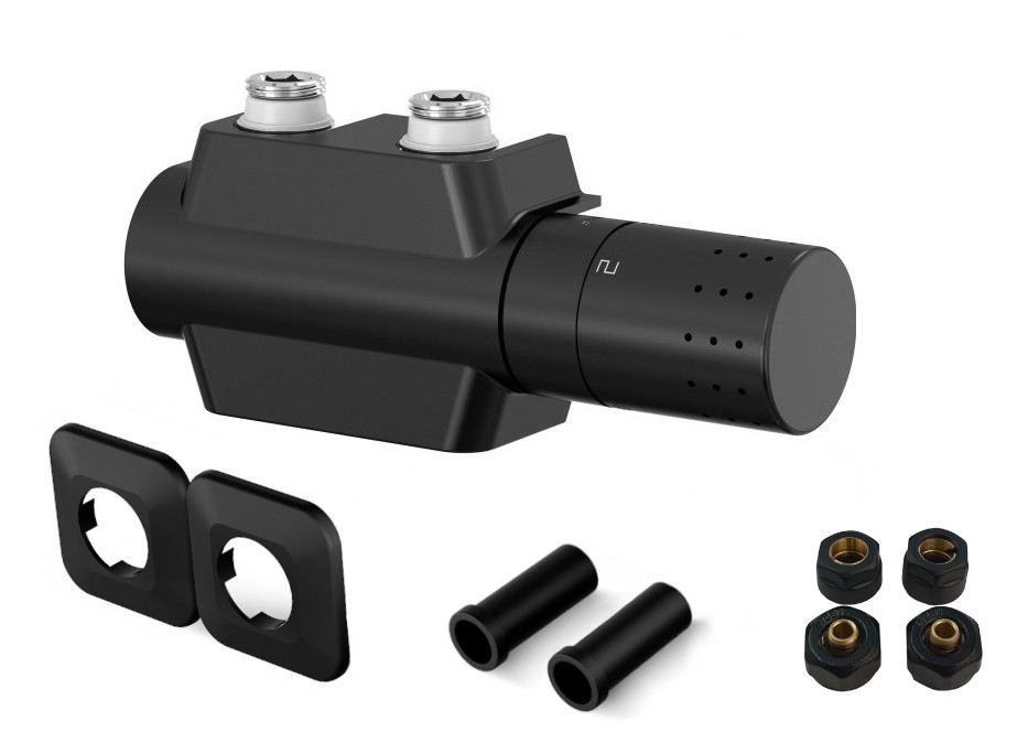 4 196,00 CZKUNI-SADA, střed.ventil s hlavicí+svěrné šroub.Cu+Al-Pex, plast.rozeta+krycí trubičky,černá barva