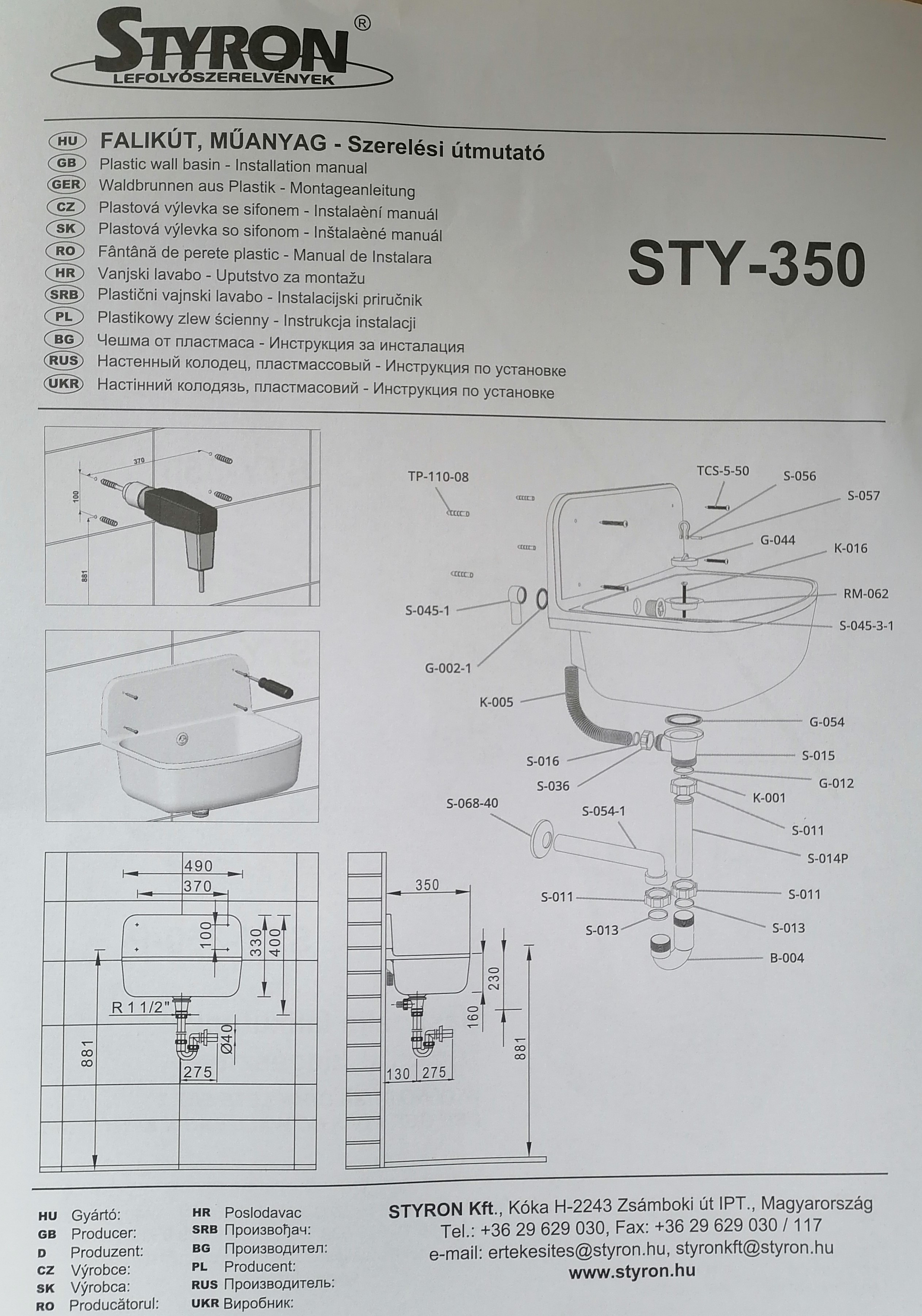 Plastová nástěnná výlevka včetně sifonu STY 350 najde své uplatnění jak v domech tak i v hotelu, penzionu, polyfunkčních domech , kancelářských komplexů a všude tam, kde jsou větší nároky na úklid.