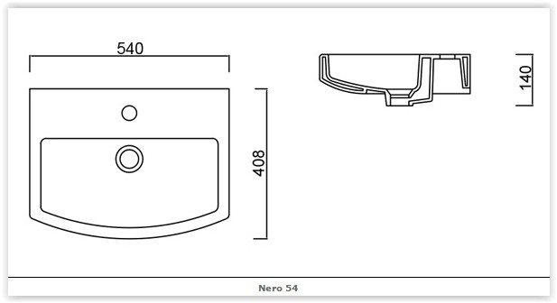 Nástěnné umyvadlo NERO 54 vyniká vysoce kvalitním zpracováním a spolehlivou funkčností materiálu.