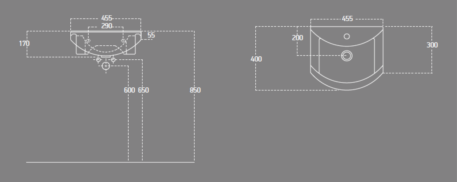 - keramické umyvadlo: 45,5 × 40 × 17 cm
