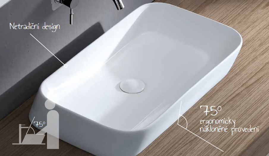 Přednosti umyvadla na desku OBLIQUE :