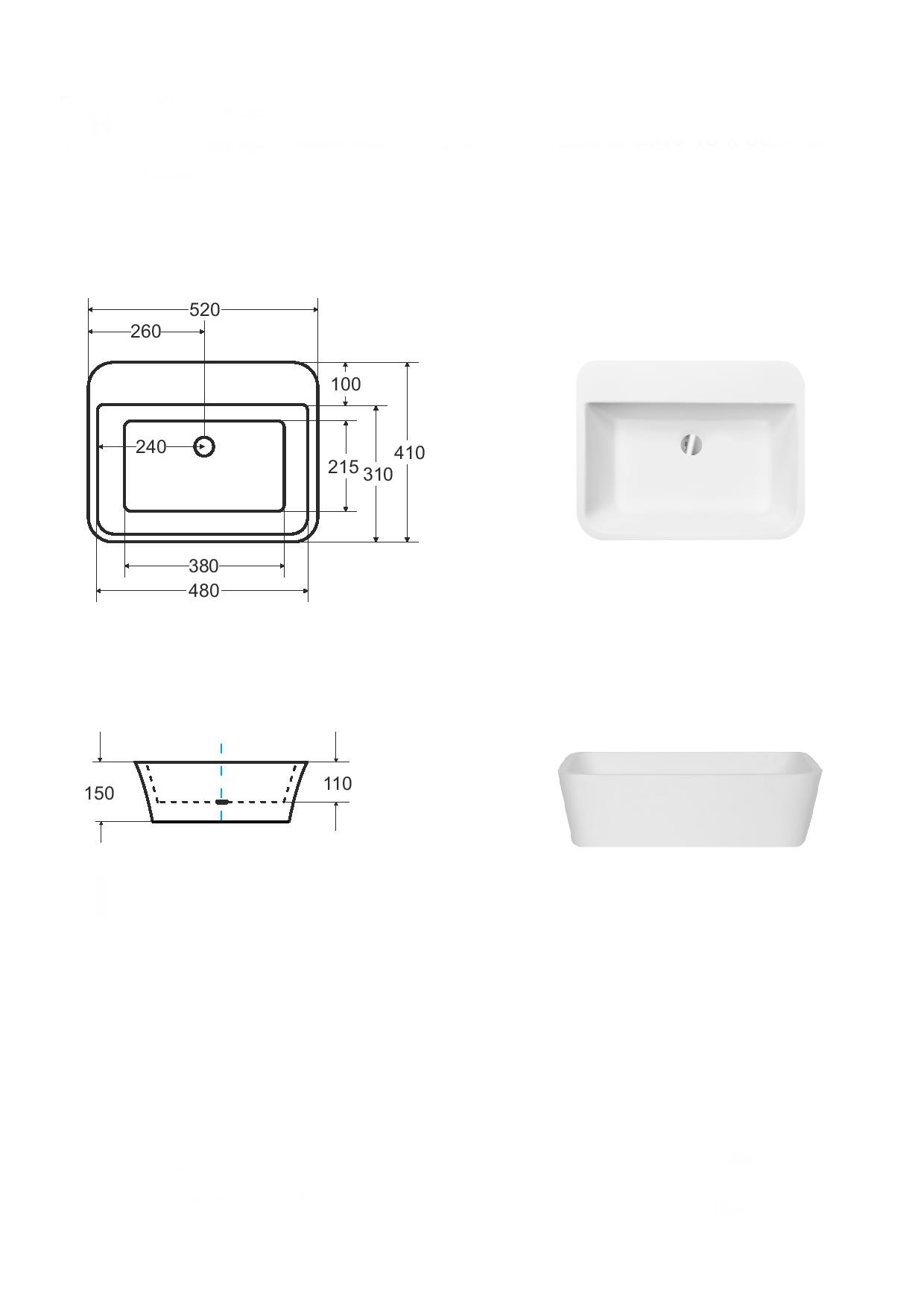Umyvadlo lze objednat bez otvoru nebo s otvorem pro baterii. Vždy je to nutno specifikovat u objednávky. Standardně se umyvadlo dodává bez otvoru pro baterii.