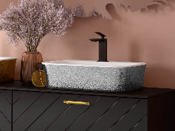 Umyvadlo ASSOS S-LINE na desku standardně nemá otvor pro stojánkovou baterii, pro elegantní řešení můžete použít umyvadlové podomítkové baterie, nebo umyvadlové vysoké stojánkové baterie.