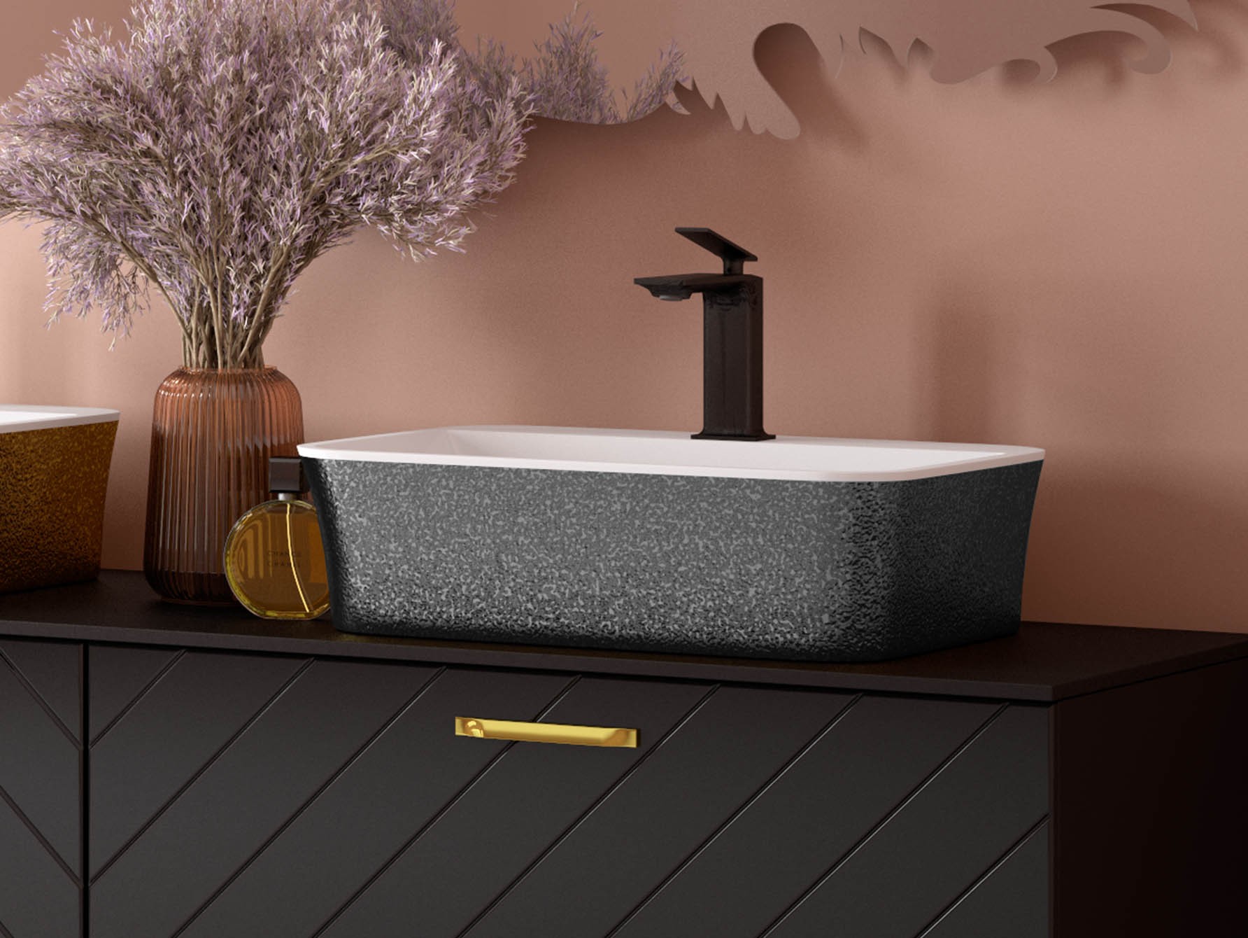 19 990,00 CZKumyvadlo na desku ASSOS S-LINE, z litého mramoru, 520x410x150 mm, GLAM03 grafit / bílá barva